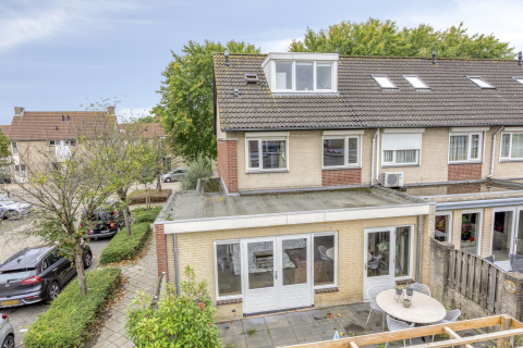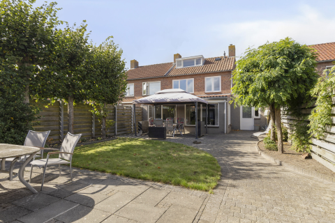 Direct achter de woning bevindt zich een ruim terras van 6,50 meter breed en 5,21 meter diep, perfect voor een grote loungeset of eettafel. De zijtuin is ruim 7 meter breed en 18 meter diep en bestaat grotendeels uit gazon. Dit maakt het de perfecte plek voor kinderen om te spelen, terwijl je zelf geniet op het terras. In de zijtuin staat een tuinhuis, ideaal voor het opbergen van tuinspullen, fietsen en speelgoed.